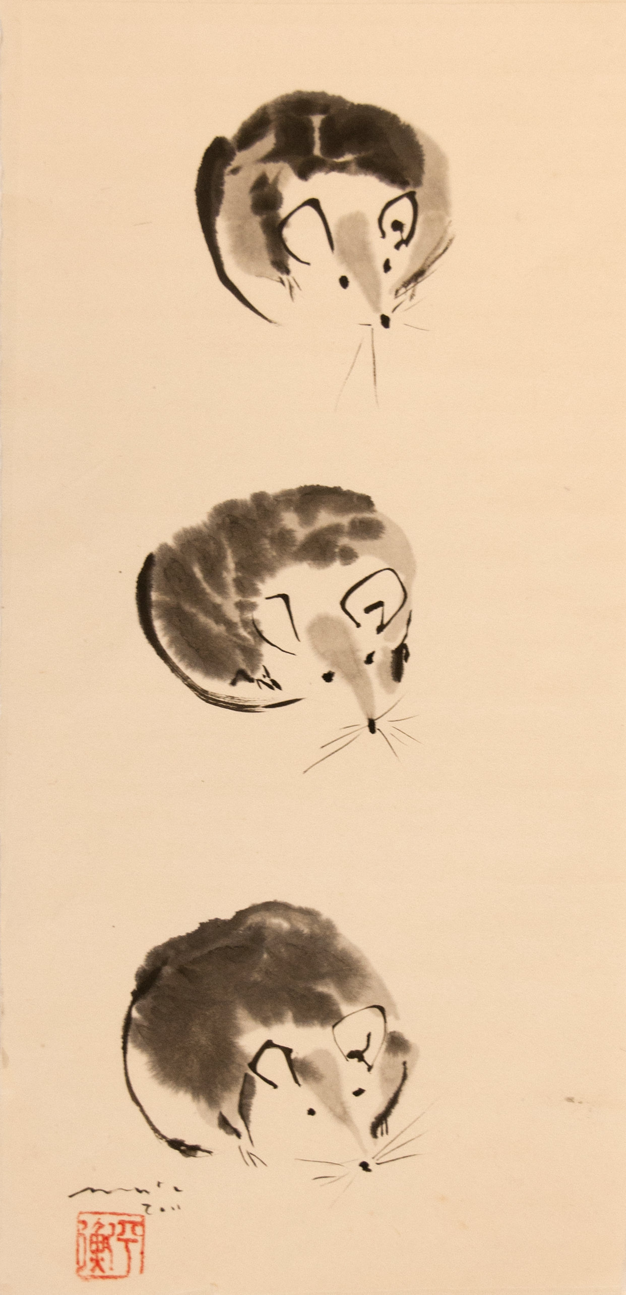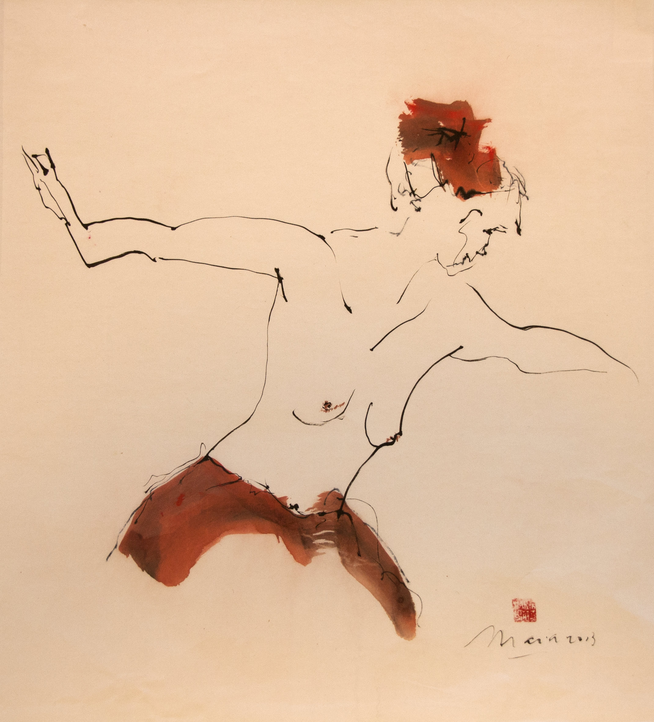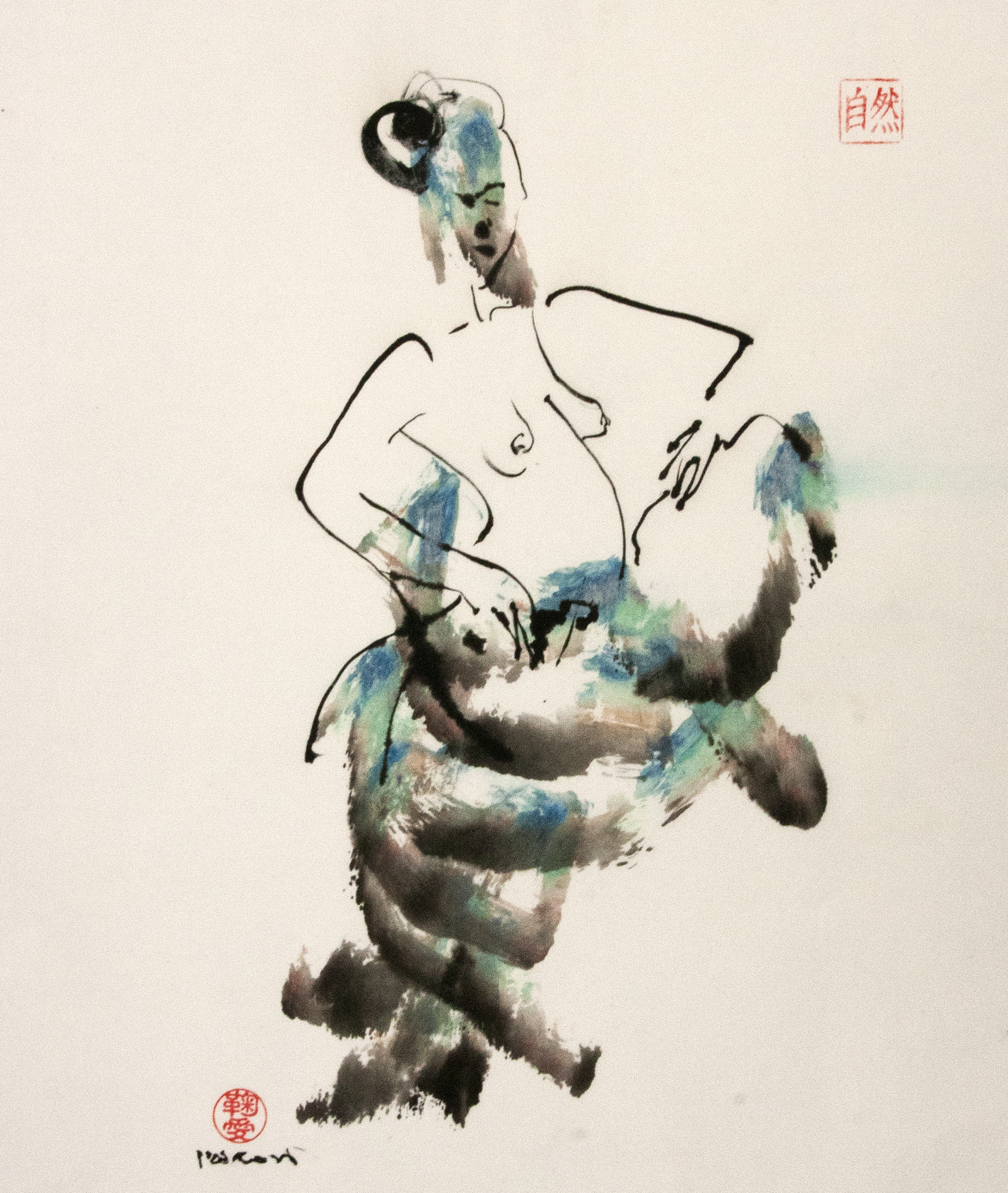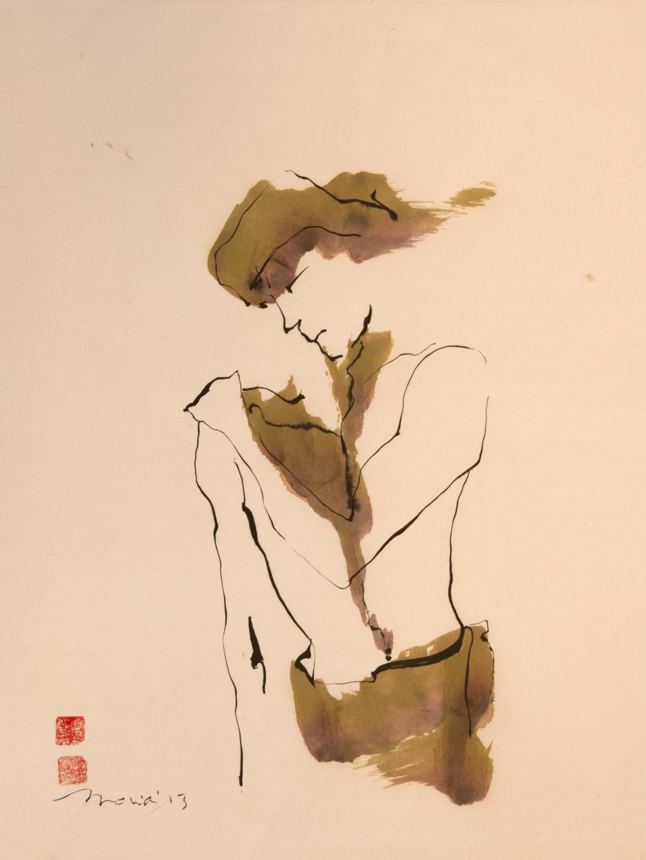Sumi-e (ink-picture) has its roots in Chinese calligraphy and Japanese Zen Buddhism. It is about a minimum of brush strokes and a maximum of imagination. The goal is to show the very essence of the subject (often from nature). Working with ink on highly absorbent paper makes it impossible to correct anything or to work slowly. It is a technique in which you have to look very carefully and put something down in one go. You need to empty, open up. Until you touch the very essence of your subject in lines and spots, light and dark and leaving paper blank. Van der Aalsvoort has been focusing on sumi-e for more than ten years and was taught by sumi-e painter Komori Fumio in Kyoto. She has developed her own style, for example by also using colour and in freedom of subjects.